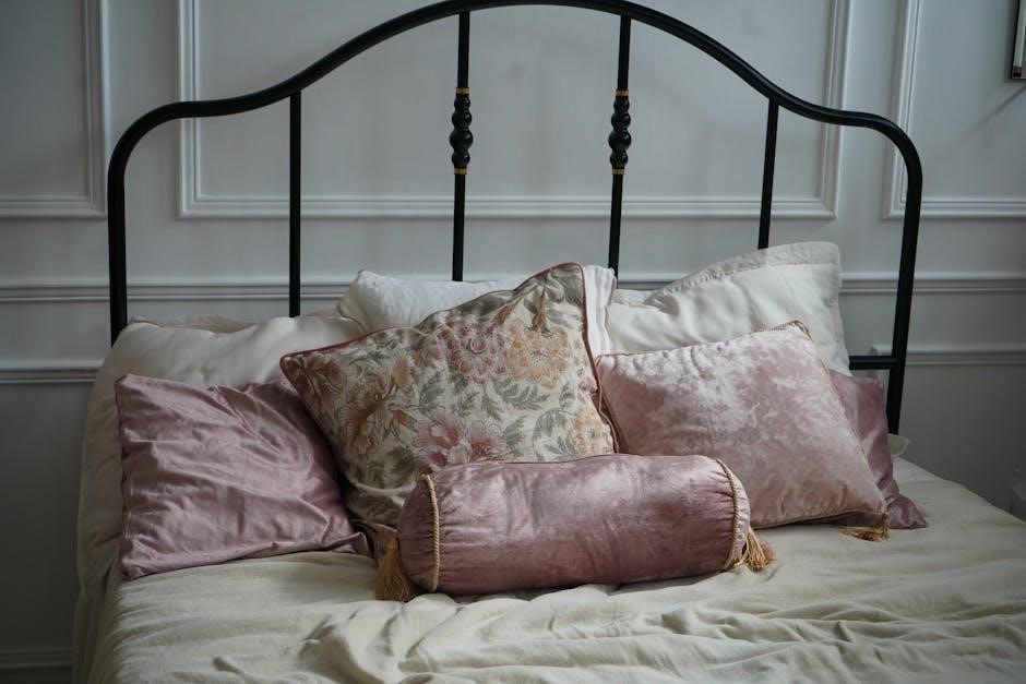 Begin by placing the headboard in its designated position‚ ensuring it aligns with the bed frame’s pre-drilled holes․ Use the provided M8 bolts to secure the headboard to the frame․ Insert the bolts through the holes on the headboard and frame‚ then tighten them using an Allen wrench․ Make sure the connection is snug but avoid overtightening‚ which could damage the hardware․ Double-check the alignment to ensure the headboard is straight and evenly spaced․ If the headboard has adjustable brackets‚ position them according to the manual’s guidelines․ Once secured‚ test the stability by gently rocking the headboard․ If any movement occurs‚ tighten the bolts further․ Proper attachment ensures the bed frame’s stability and durability․ Always refer to the manual for specific bolt locations and torque recommendations․ This step is critical for a sturdy assembly․ Ensure all connections are secure before proceeding․ Regularly inspect the bolts over time to maintain stability․ Follow the manufacturer’s instructions for optimal results․ Proper alignment and tightening are essential for a safe and stable bed frame․ Always use the correct tools to avoid damaging the hardware․ A secure headboard attachment prevents wobbling and enhances overall safety․ This step completes the headboard installation‚ allowing you to move on to other components․ Ensure all bolts are tightly secured but not over-torqued․ If unsure‚ consult the manual for clarification․ Proper installation ensures years of reliable use․ A well-attached headboard is vital for the bed frame’s structural integrity․ Always follow the manufacturer’s instructions for best results․ This step is essential for a safe and sturdy bed frame․ Ensure all bolts are tightly secured before proceeding․ Proper installation ensures the headboard remains stable and secure․ Follow the manual’s guidelines for a successful assembly․ This step is crucial for the overall stability of the bed frame․ Always use the correct tools and hardware for a secure connection․ Ensure the headboard is firmly attached to the bed frame for safety and durability․ Proper installation ensures a stable and secure bed frame․ Always refer to the manual for specific instructions․ This step is essential for a safe and sturdy assembly․ Ensure all bolts are tightly secured before moving on․ Proper installation ensures the headboard remains firmly attached․ Follow the manufacturer’s instructions for optimal results․ This step is critical for a secure and stable bed frame․ Always use the correct tools and hardware for a proper connection․ Ensure the headboard is securely attached to the bed frame for safety and durability․ Proper installation ensures a stable and secure bed frame․ Always refer to the manual for specific instructions․ This step is essential for a safe and sturdy assembly․ Ensure all bolts are tightly secured before moving on․ Proper installation ensures the headboard remains firmly attached․ Follow the manufacturer’s instructions for optimal results․ This step is critical for a secure and stable bed frame․ Always use the correct tools and hardware for a proper connection․ Ensure the headboard is securely attached to the bed frame for safety and durability․ Proper installation ensures a stable and secure bed frame․ Always refer to the manual for specific instructions․ This step is essential for a safe and sturdy assembly․ Ensure all bolts are tightly secured before moving on․ Proper installation ensures the headboard remains firmly attached․ Follow the manufacturer’s instructions for optimal results․ This step is critical for a secure and stable bed frame․ Always use the correct tools and hardware for a proper connection․ Ensure the headboard is securely attached to the bed frame for safety and durability․ Proper installation ensures a stable and secure bed frame․ Always refer to the manual for specific instructions․ This step is essential for a safe and sturdy assembly․ Ensure all bolts are tightly secured before moving on․ Proper installation ensures the headboard remains firmly attached․ Follow the manufacturer’s instructions for optimal results․ This step is critical for a secure and stable bed frame․ Always use the correct tools and hardware for a proper connection․ Ensure the headboard is securely attached to the bed frame for safety and durability․ Proper installation ensures a stable and secure bed frame․ Always refer to the manual for specific instructions․ This step is essential for a safe and sturdy assembly․ Ensure all bolts are tightly secured before moving on․ Proper installation ensures the headboard remains firmly attached․ Follow the manufacturer’s instructions for optimal results․ This step is critical for a secure and stable bed frame․ Always use the correct tools and hardware for a proper connection․ Ensure the headboard is securely attached to the bed frame for safety and durability․ Proper installation ensures a stable and secure bed frame․ Always refer to the manual for specific instructions․ This step is essential for a safe and sturdy assembly․ Ensure all bolts are tightly secured before moving on․ Proper installation ensures the headboard remains firmly attached․ Follow the manufacturer’s instructions for optimal results․ This step is critical for a secure and stable bed frame․ Always use the correct tools and hardware for a proper connection․ Ensure the headboard is securely attached to the bed frame for safety and durability․ Proper installation ensures a stable and secure bed frame․ Always refer to the manual for specific instructions․ This step is essential for a safe and sturdy assembly․ Ensure all bolts are tightly secured before moving on․ Proper installation ensures the headboard remains firmly attached․ Follow the manufacturer